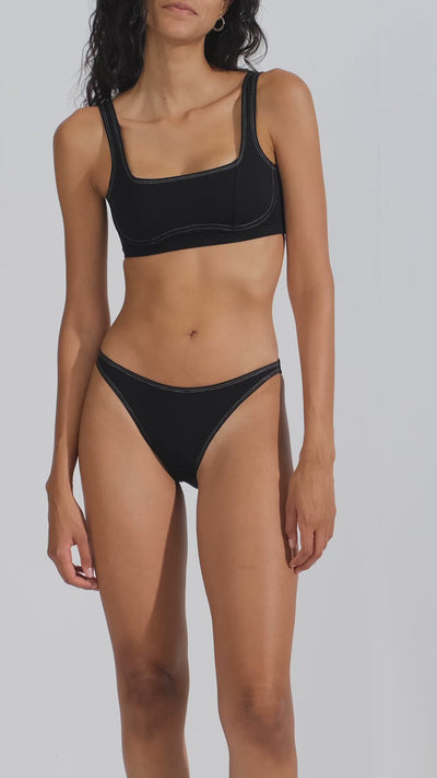 With its sleek, minimalist styling and subtle wave-shaped contrast stitching, this swim collection stands out for its simplicity. Plus it's made of recycled polyamide, making it as sustainable as it is stylish.